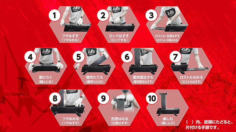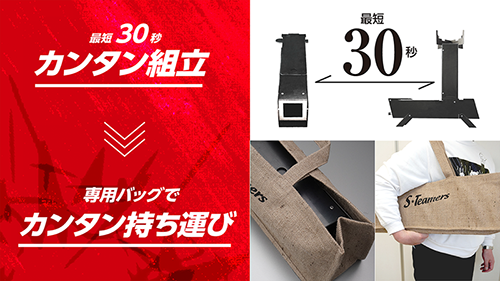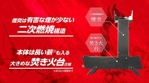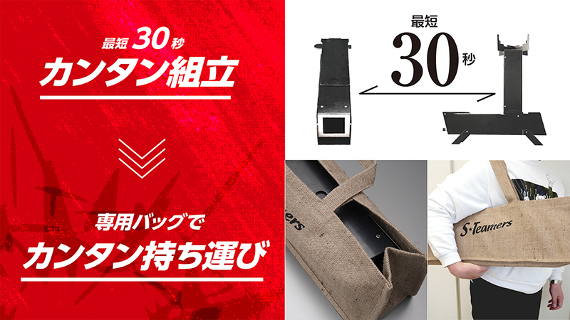 【S★Teamers ロケットストーブ】梱包内容/ ●ロケットストーブ本体(煙突、脚一体型本体・五徳・ロストル・焚き火台蓋・煙突固定用の金具×2) ●専用バッグ ●取扱説明書 *画像は開発中のものになります。